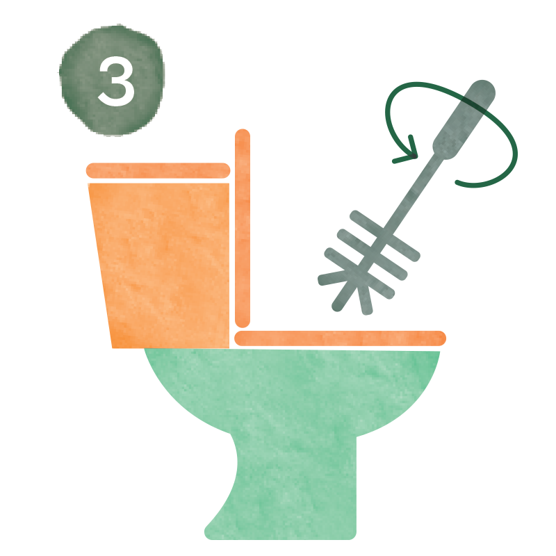 • Mit der Toilettenbürste schrubben und spülen