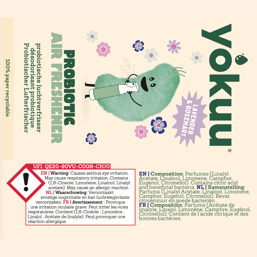 Most air fresheners just cover up smells with synthetic perfumes. YOKUU does it differently: our spray uses 1 billion probiotics to break down odour molecules at the source.